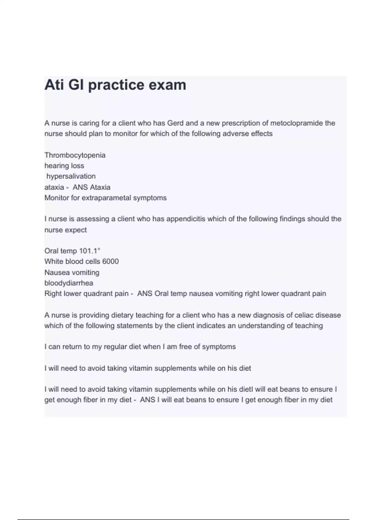 Ati GI practice exam Questions and Answers Latest Update (A+ GRADED)