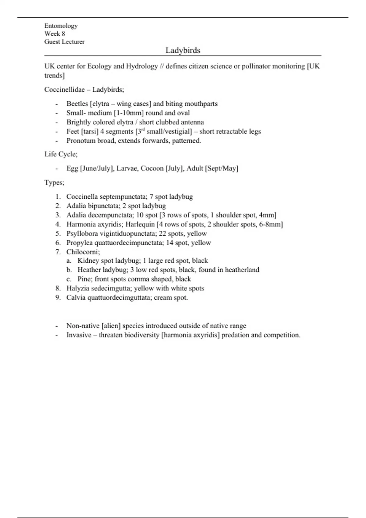 - Invasive – threaten biodiversity [harmonia axyridis] predation and competition.