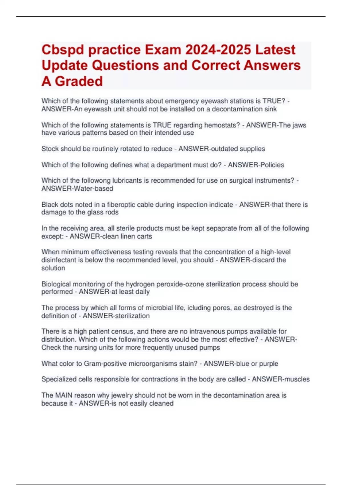 Cbspd practice Exam Latest Update Questions and Correct Answers A Graded