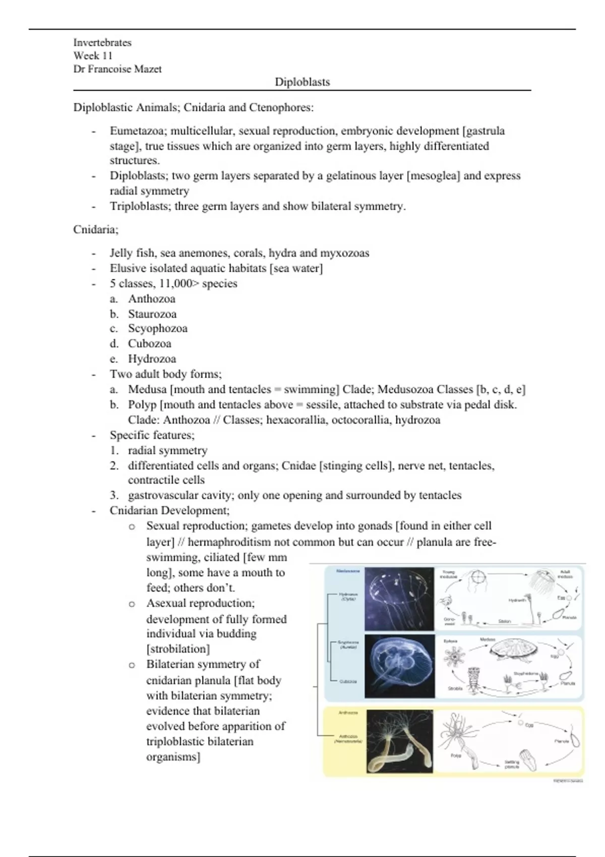 Diploblastic Animals; Cnidaria and Ctenophores: