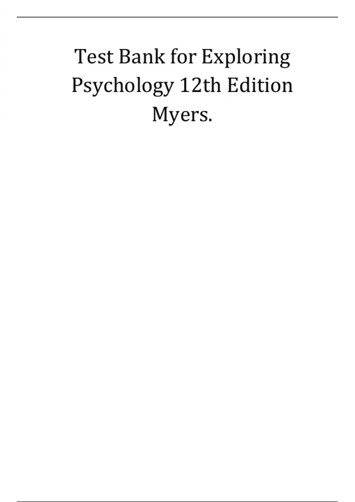 Test Bank for Exploring Psychology 12th Edition Myers Complete and Comrehensive Test Bank.