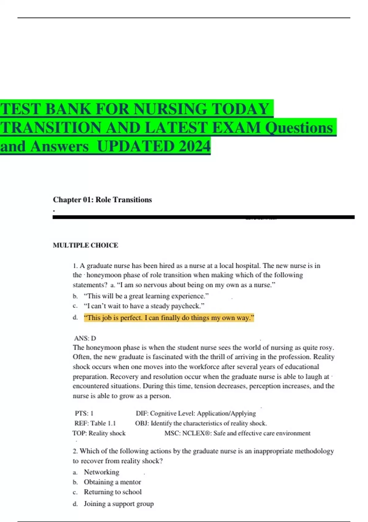 TEST BANK FOR NURSING TODAY TRANSITION AND LATEST EXAM Questions and Answers UPDATED 2024