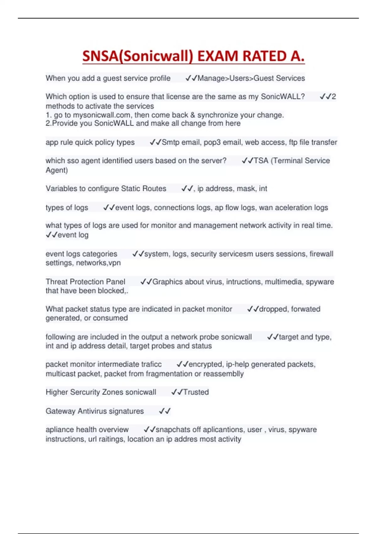 SNSA(Sonicwall) EXAM RATED A.