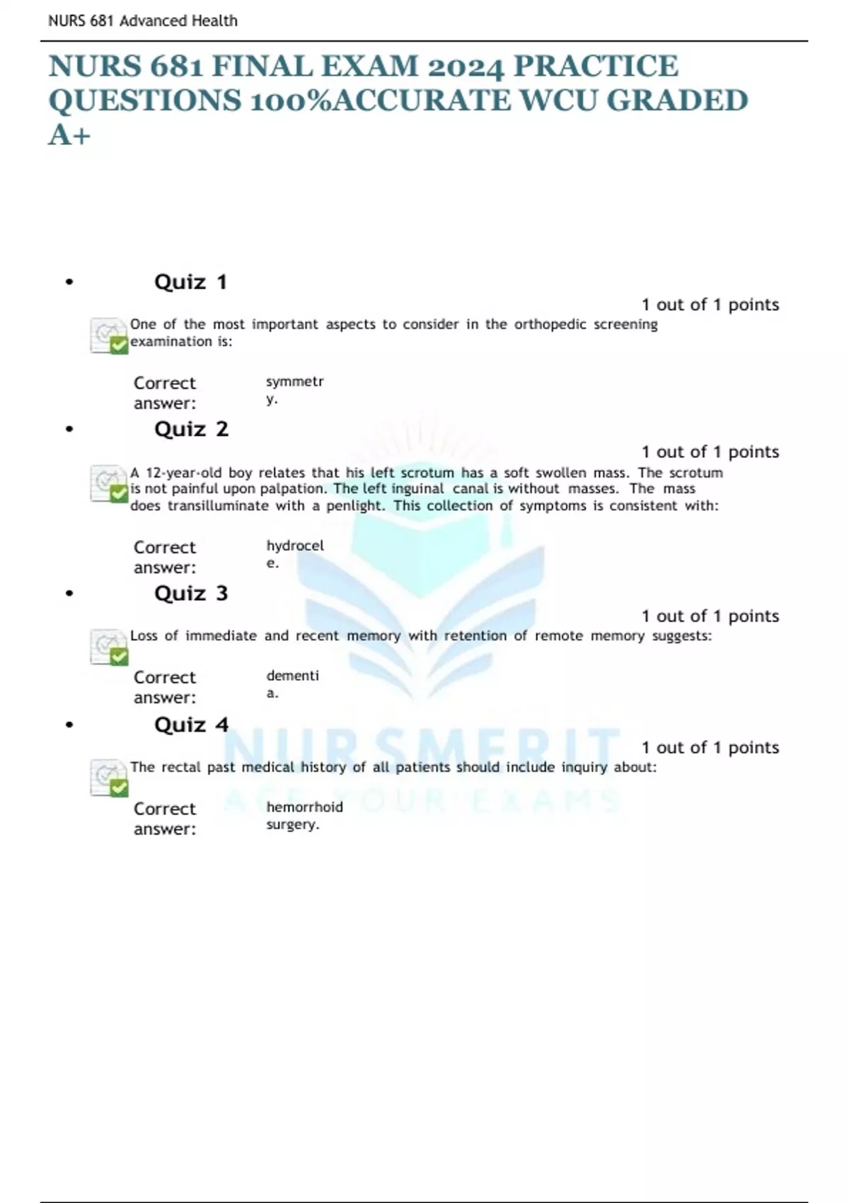 NURS 681 FINAL EXAM 2024 PRACTICE QUESTIONS 100%ACCURATE WCU GRADED A+