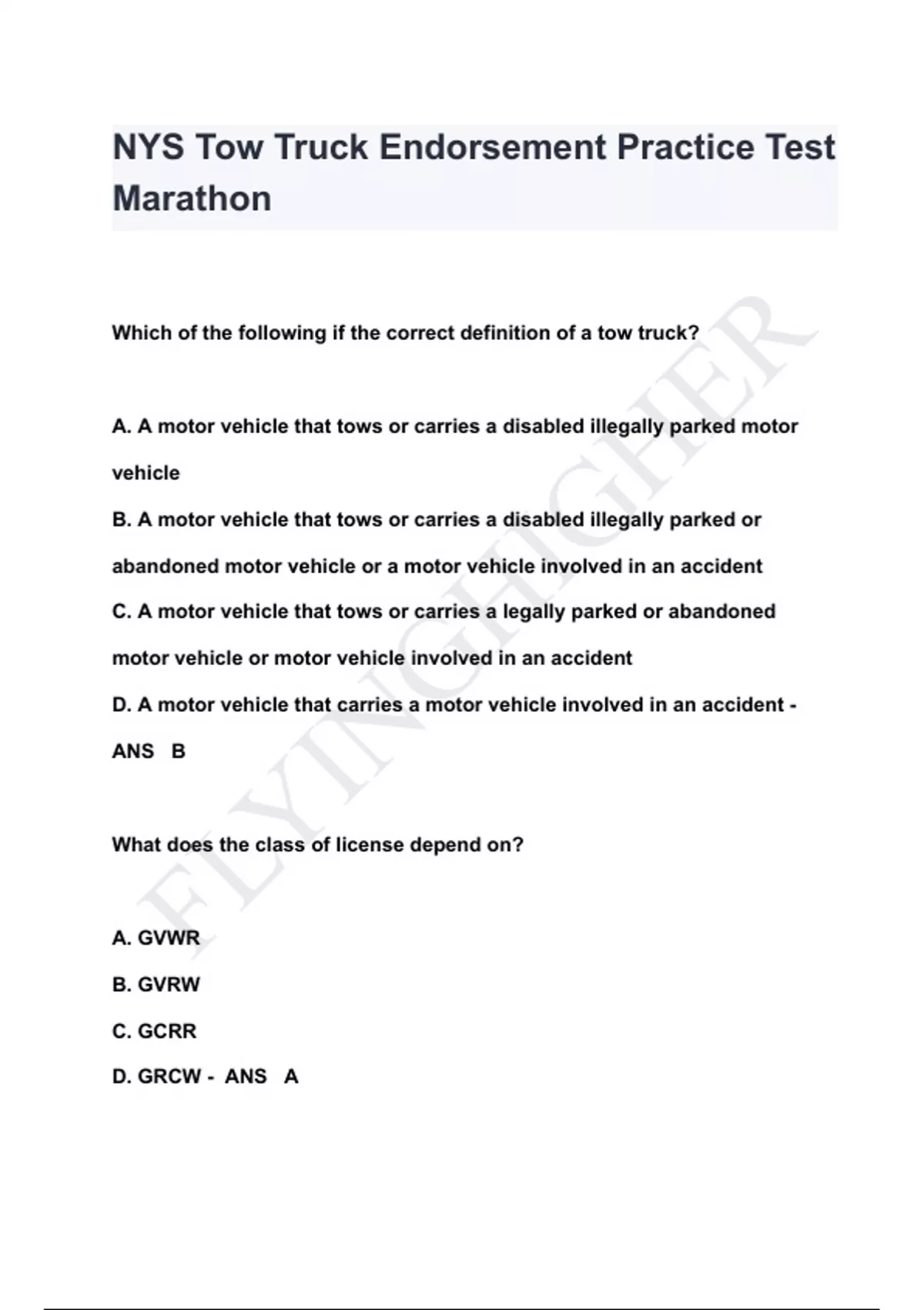- NYS Tow Truck Endorsement Practice