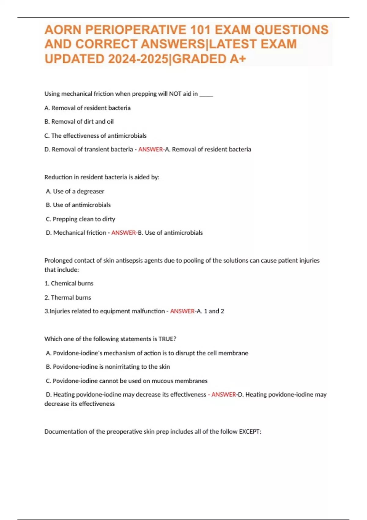 AORN PERIOPERATIVE 101 EXAM QUESTIONS AND CORRECT ANSWERS|LATEST EXAM UPDATED |GRADED A+