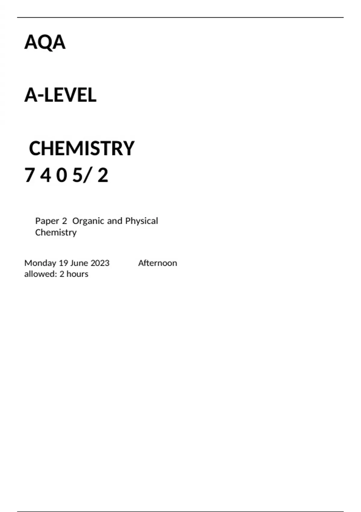 AQA A level chemistry paper 2 QUESTION PAPER for June 2023