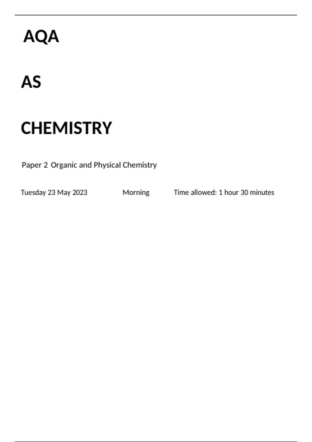 AQA AS level chemistry paper 2 QUESTION PAPER for June 2023