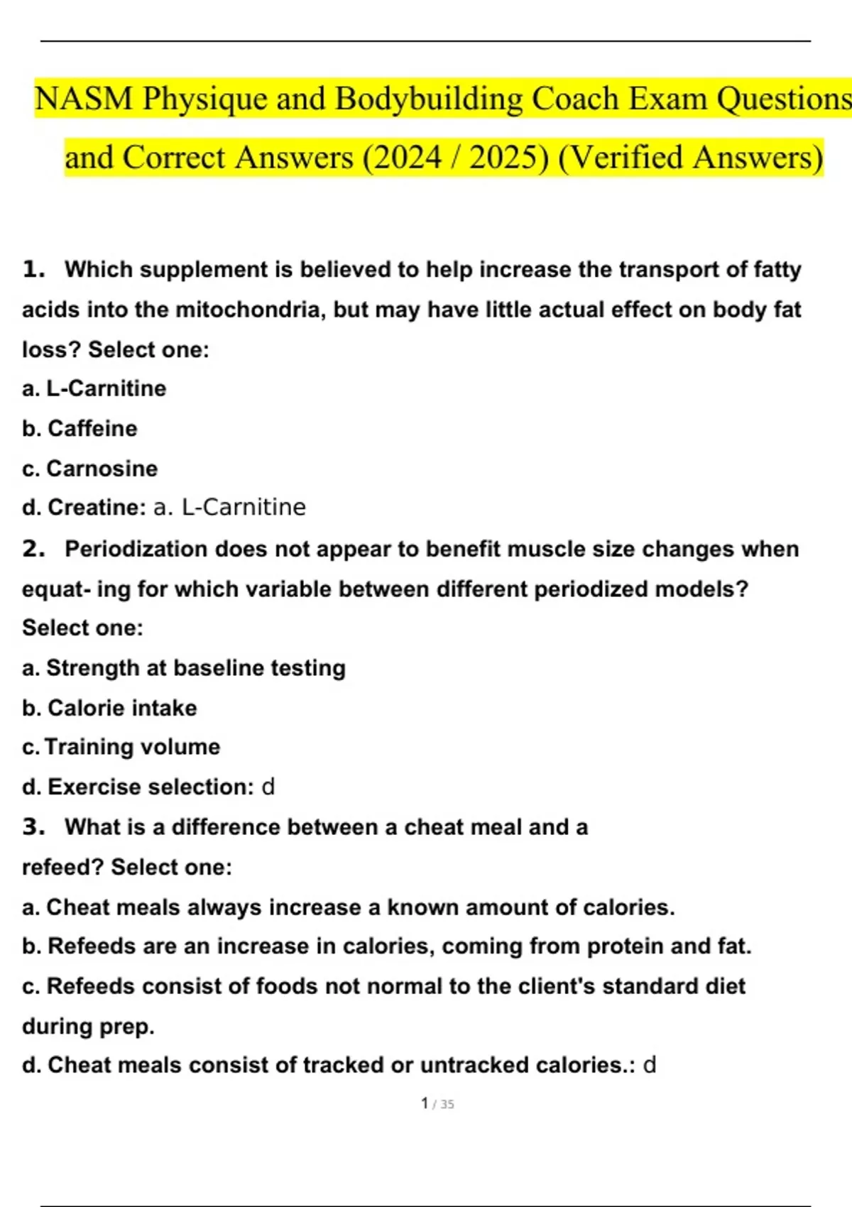 NASM PHYSIQUE AND BODYBUILDING COACH STUDY SET EXAM LATEST BUNDLE PACK SOLUTION (VERIFIED)