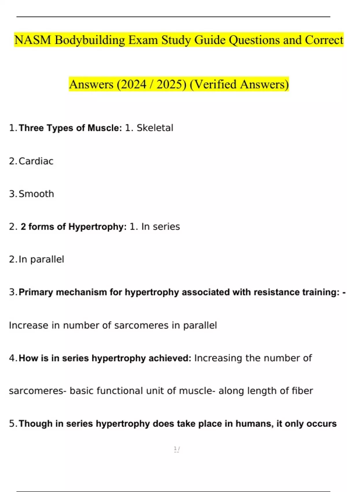 NASM Bodybuilding Exam Study Guide Questions and Answers (2024 / 2025) (Verified Answers)