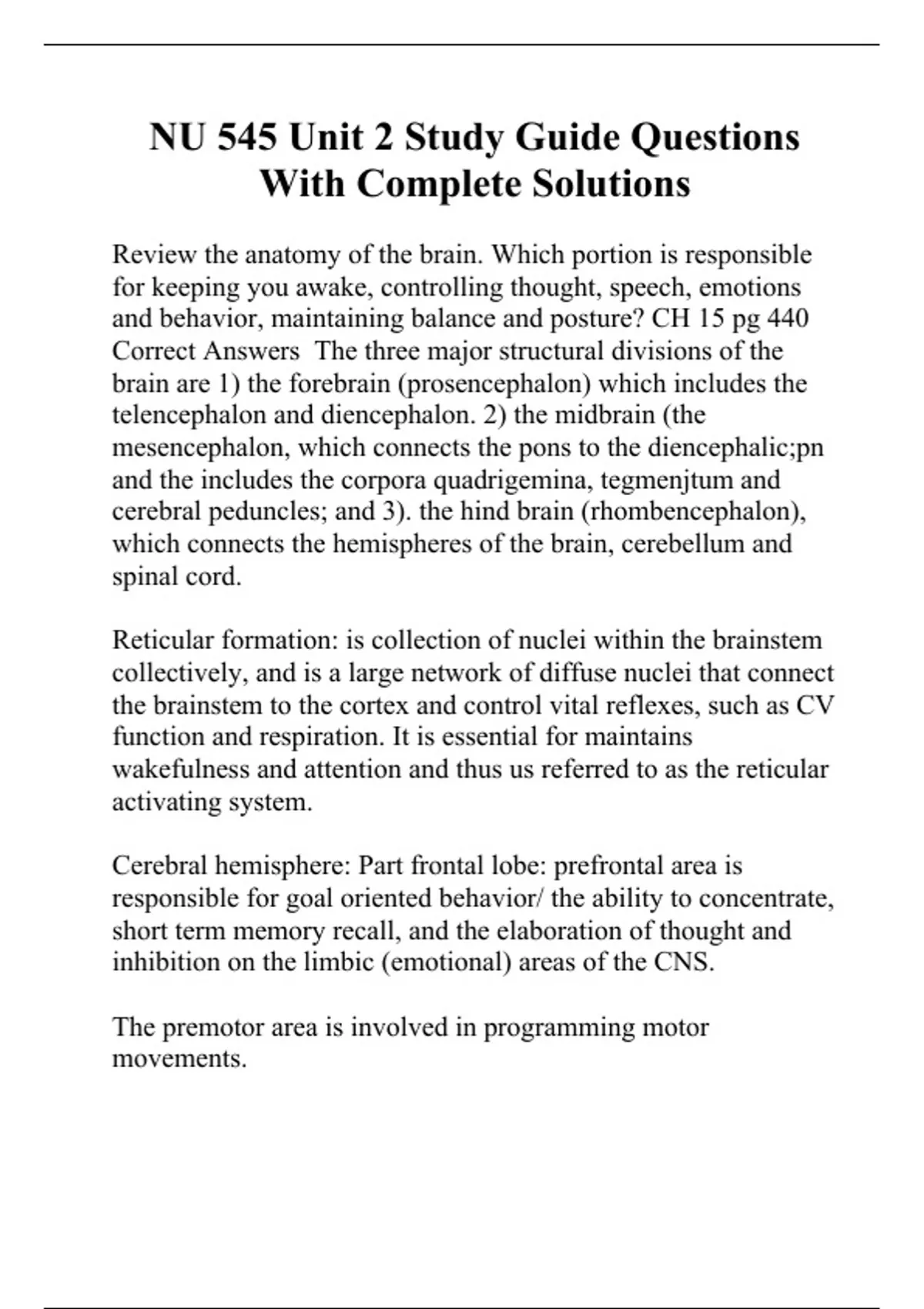 NU 545 Unit 2 Study Guide Questions With Complete Solutions