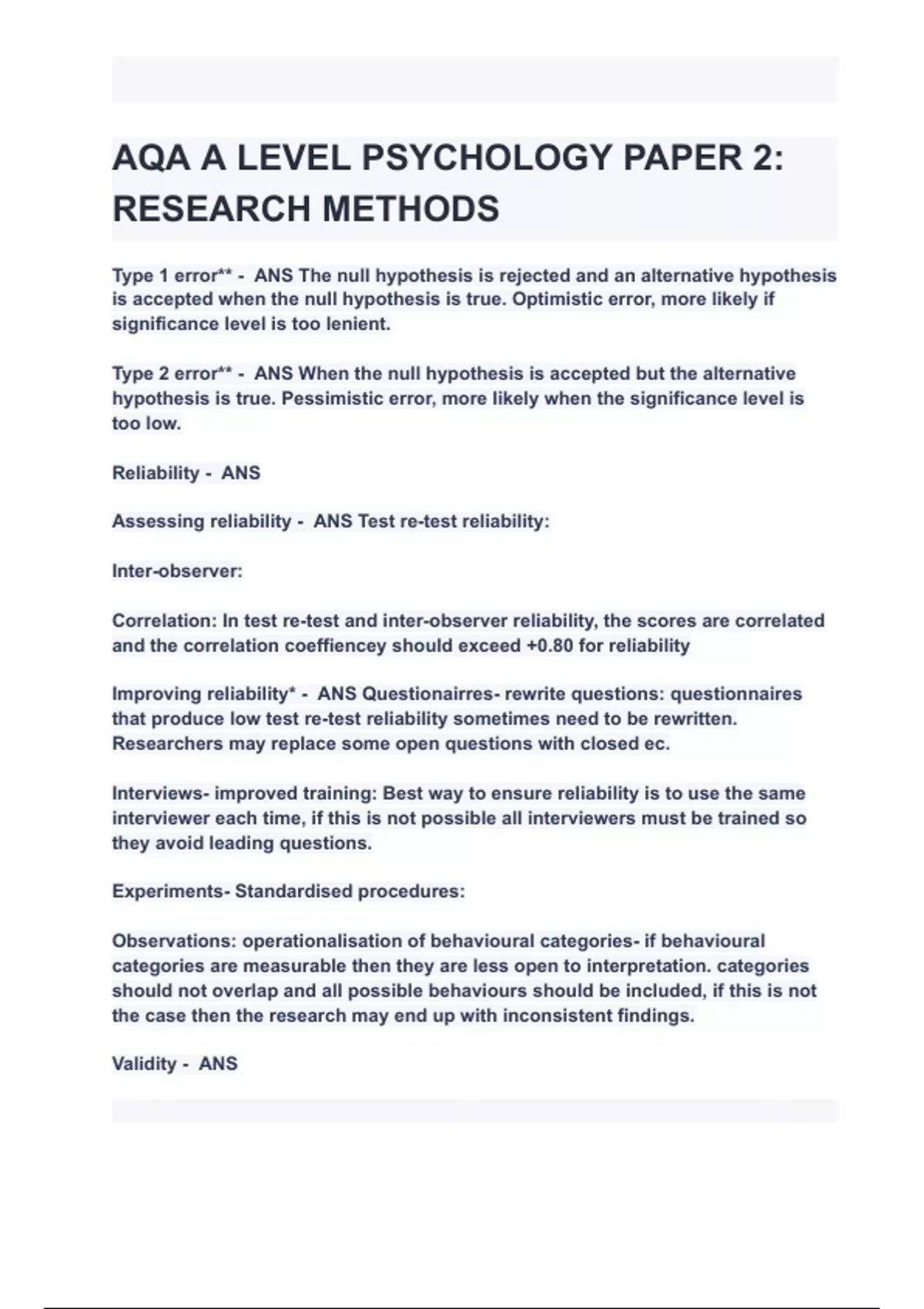 - AQA A LEVEL PSYCHOLOGY PAPER 2: RESEARCH METHODS