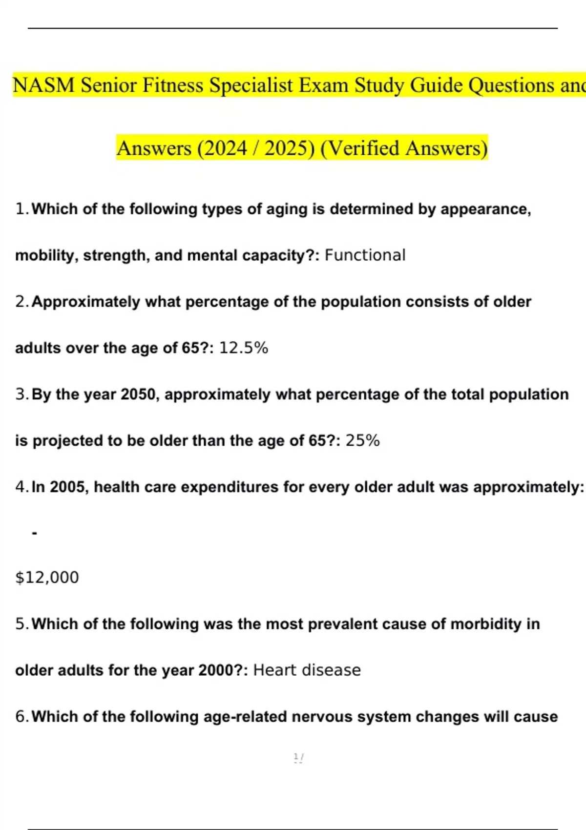 NASM Senior Fitness Specialist Questions and Answers Already Passed