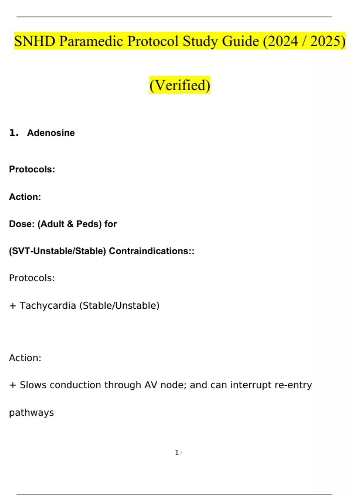 SNHD Paramedic Protocol Study Guide (2024 / 2025) (Verified)