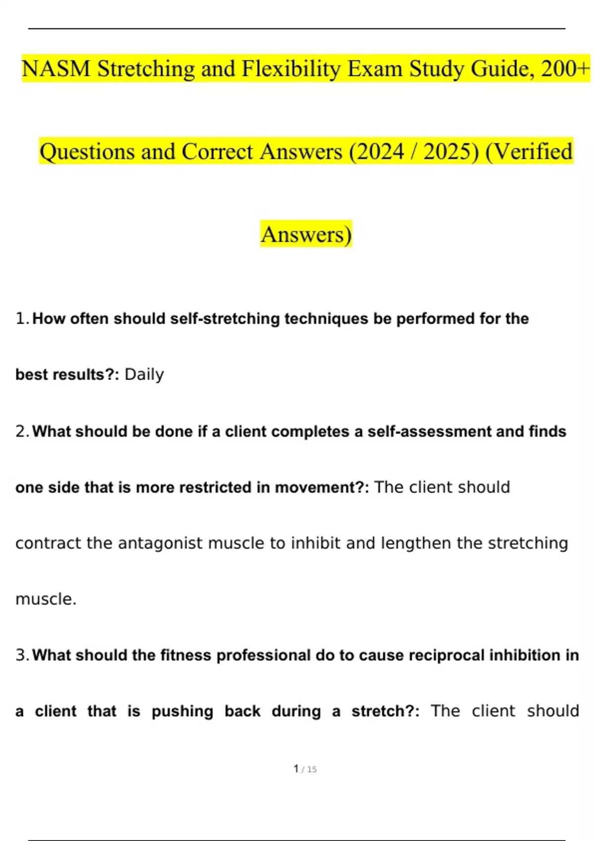 NASM Stretching and Flexibility Exam Study Guide, 200+ Questions and Answers (2024 / 2025) (Verified Answers)