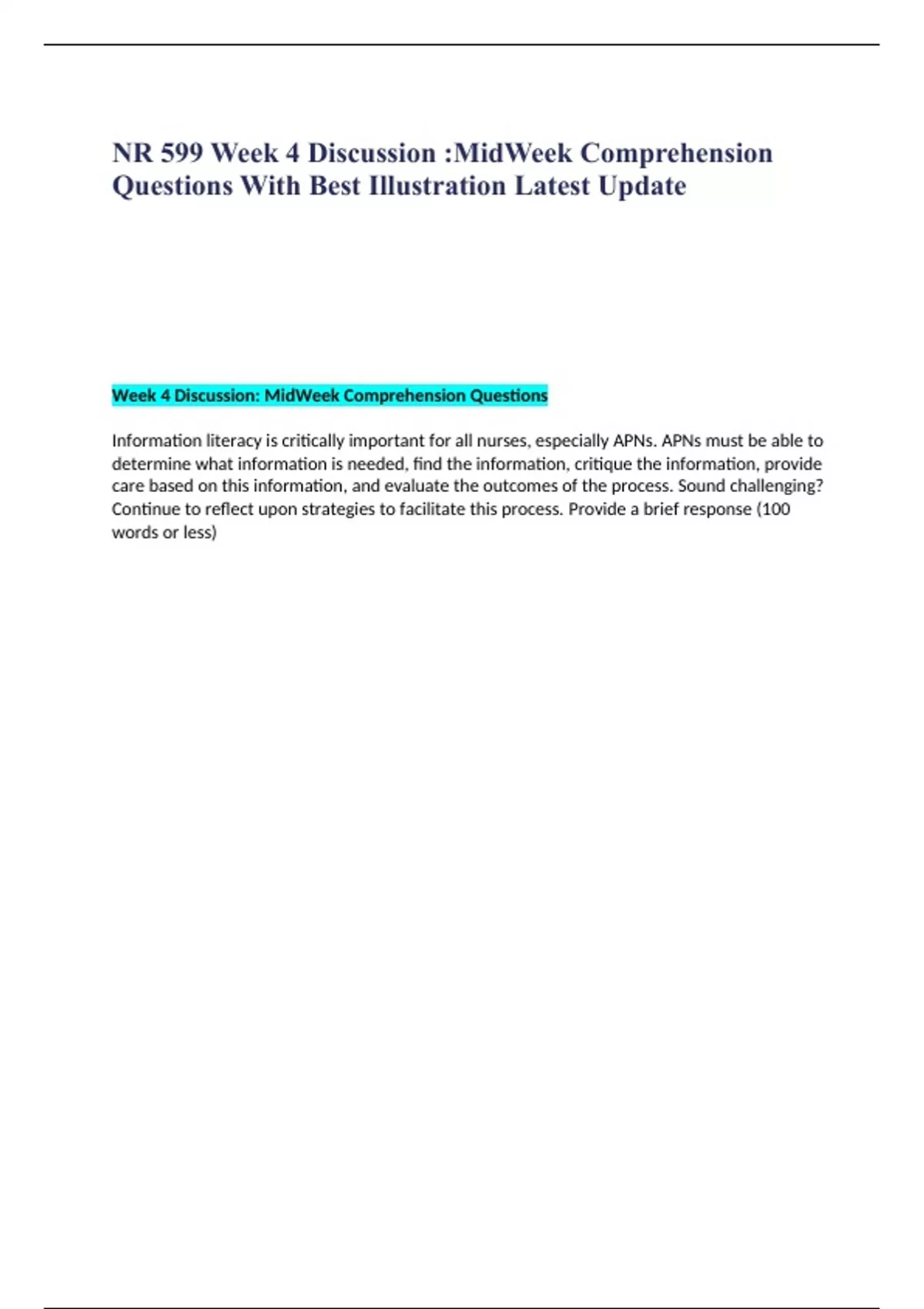 NR 599 Week 4 Discussion :MidWeek Comprehension Questions With Best Illustration Latest Update