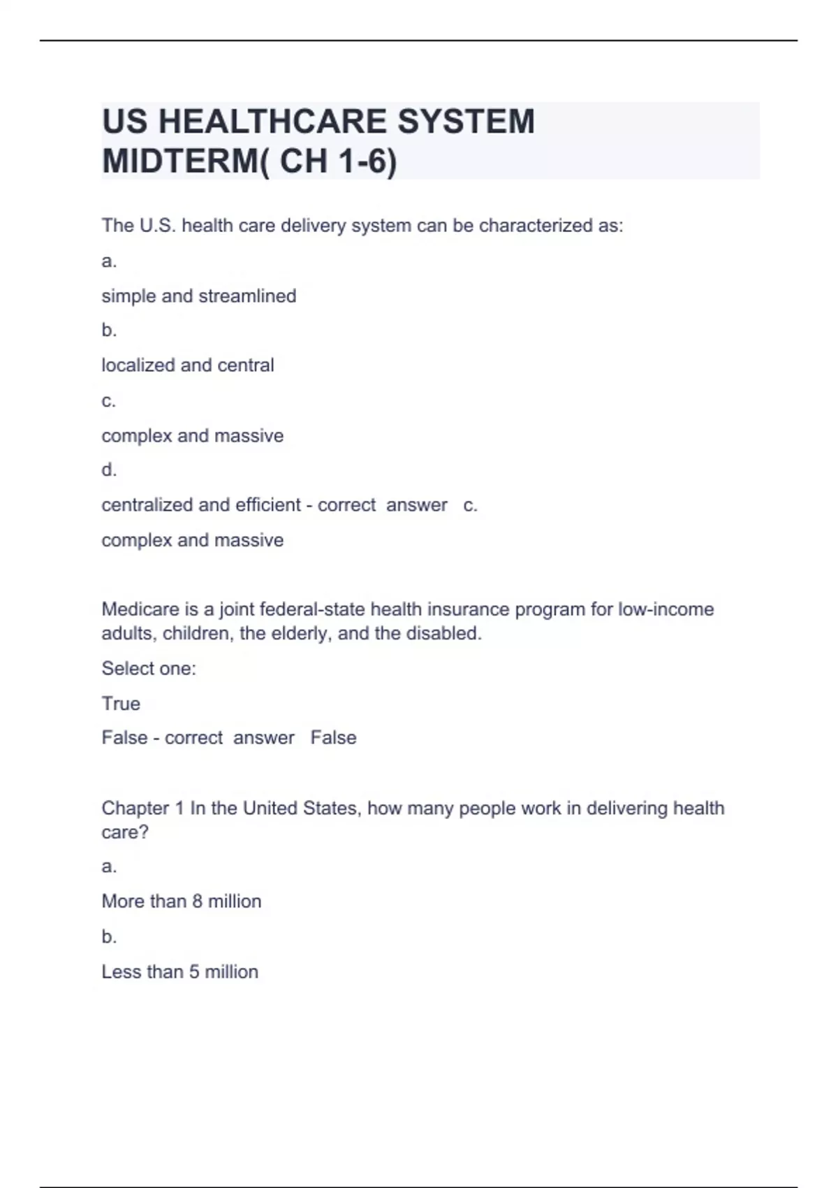 US HEALTHCARE SYSTEM MIDTERM. verify to pass 2024
