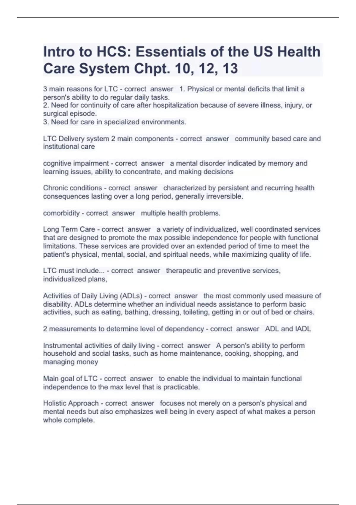 Intro to HCS questions and answers verified 2024