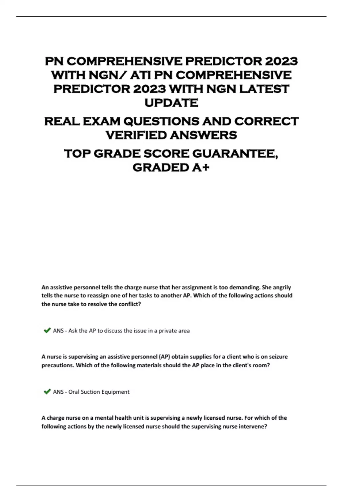 PN COMPREHENSIVE PREDICTOR 2023 WITH NGN/ ATI PN COMPREHENSIVE PREDICTOR 2023 WITH NGN LATEST UPDATE REAL EXAM QUESTIONS AND CORRECT VERIFIED ANSWERS TOP GRADE SCORE GUARANTEE, GRADED A+