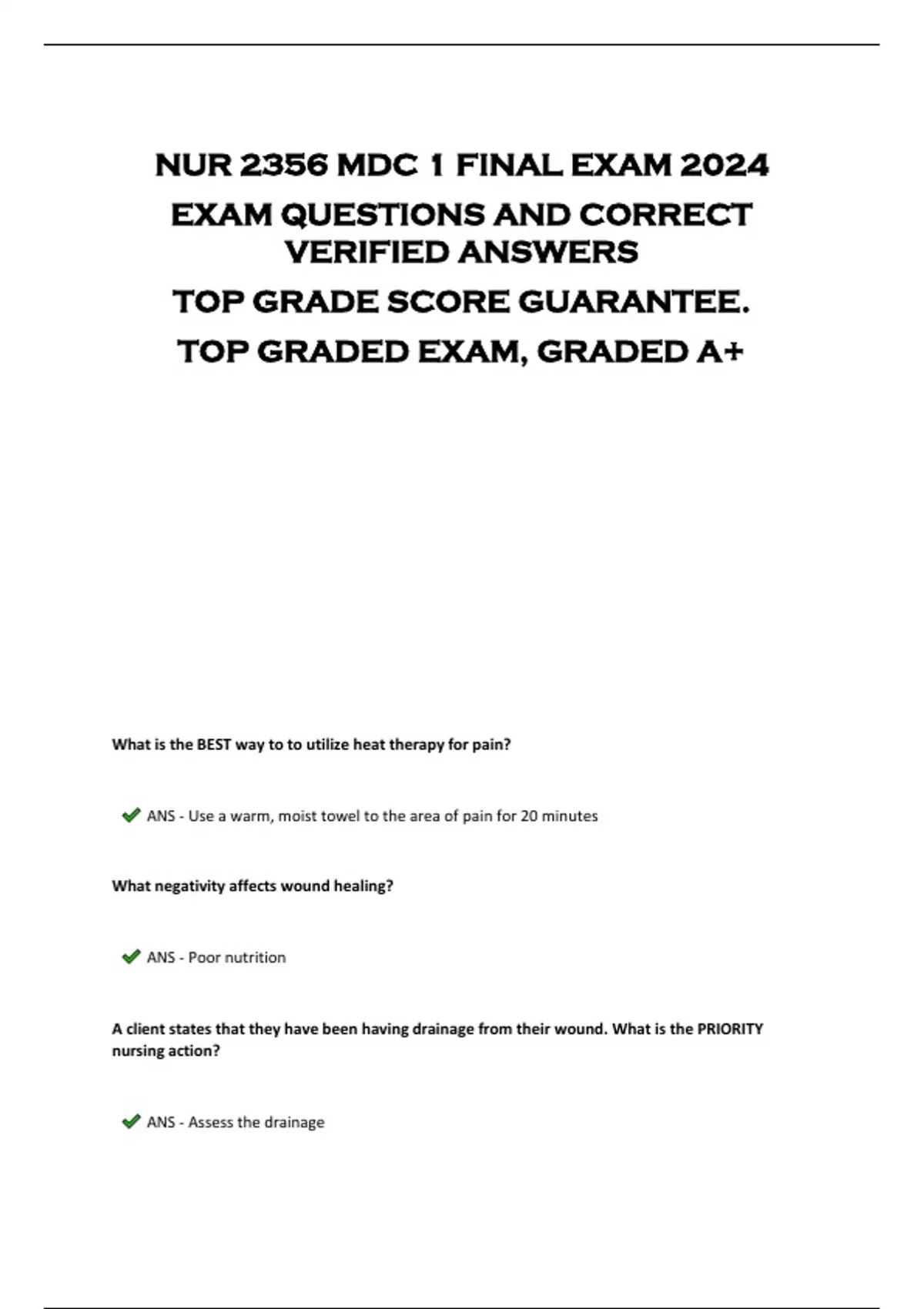 NUR 2356 MDC 1 FINAL EXAM 2024 EXAM QUESTIONS AND CORRECT VERIFIED ANSWERS TOP GRADE SCORE GUARANTEE. TOP GRADED EXAM, GRADED A+