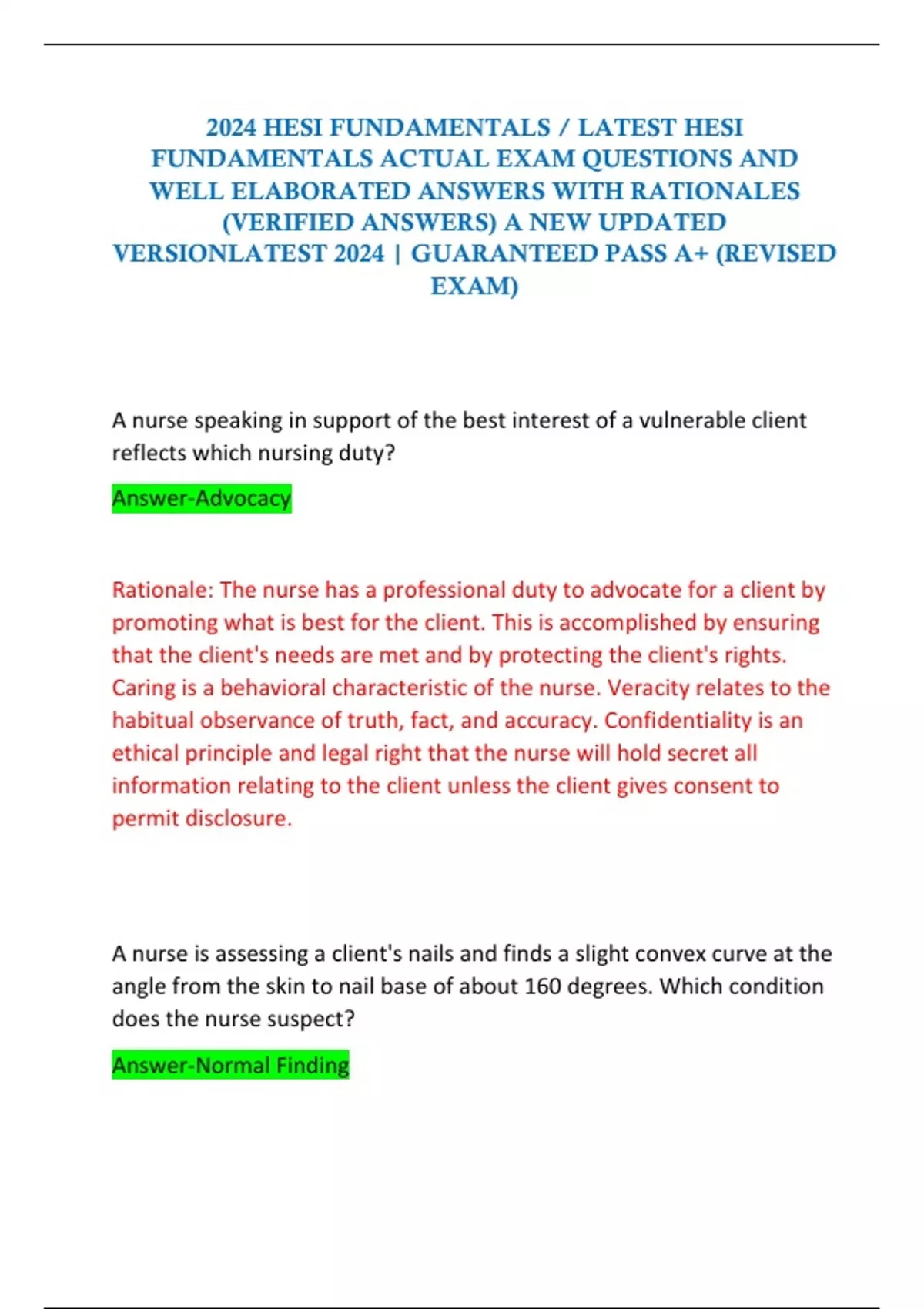 2024 HESI FUNDAMENTALS / LATEST HESI FUNDAMENTALS ACTUAL EXAM QUESTIONS AND WELL ELABORATED ANSWERS WITH RATIONALES (VERIFIED ANSWERS) A NEW UPDATED VERSIONLATEST 2024 | GUARANTEED PASS A+ (REVISED EXAM)