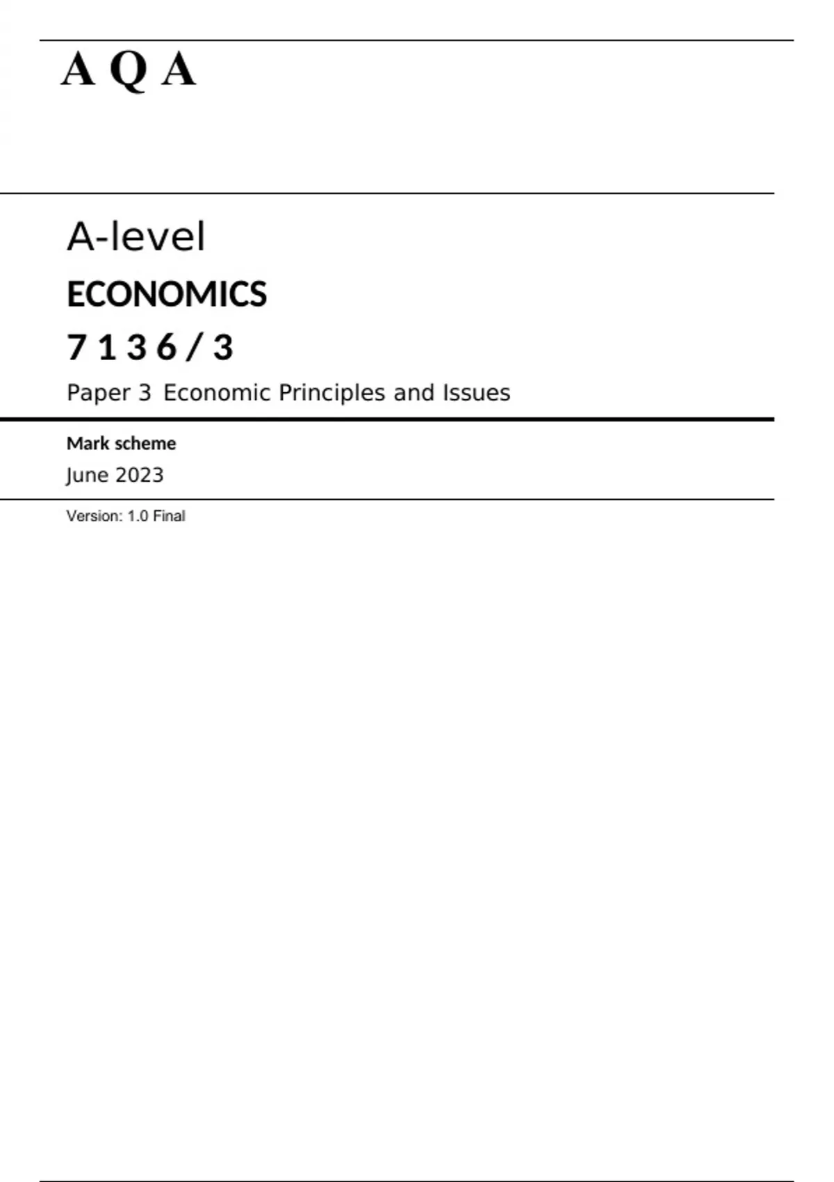 AQA A Level Economics paper 3 MARK SCHEME for June 6/3