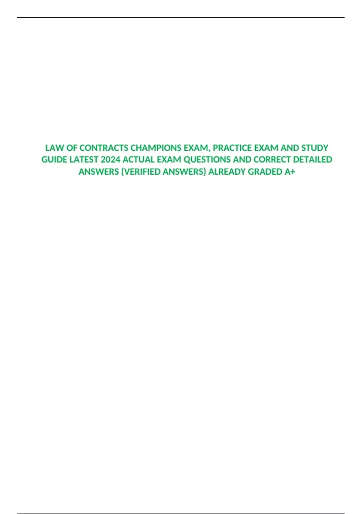 LAW OF CONTRACTS CHAMPIONS EXAM, PRACTICE EXAM AND STUDY GUIDE LATEST 2024 ACTUAL EXAM QUESTIONS AND CORRECT DETAILED ANSWERS (VERIFIED ANSWERS) ALREADY GRADED A+