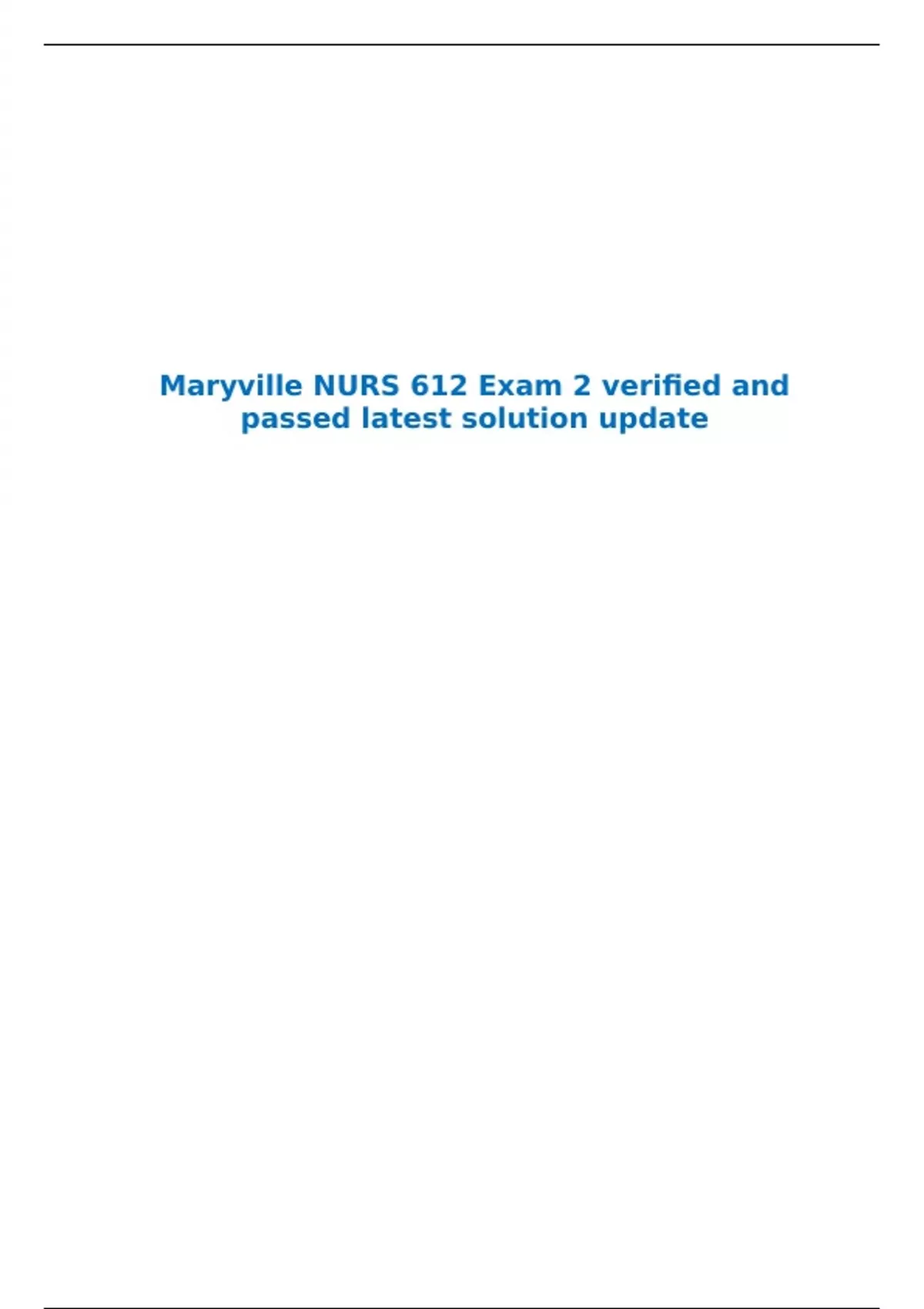 Maryville NURS 612 Exam 2 verified and passed latest solution update