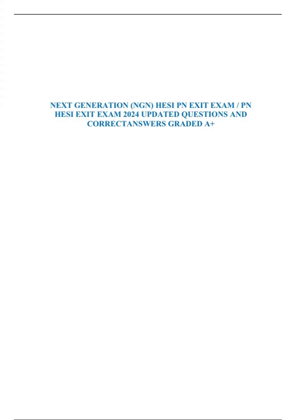 NEXT GENERATION (NGN) HESI PN EXIT EXAM / PN HESI EXIT EXAM 2024 UPDATED QUESTIONS AND CORRECTANSWERS GRADED A+
