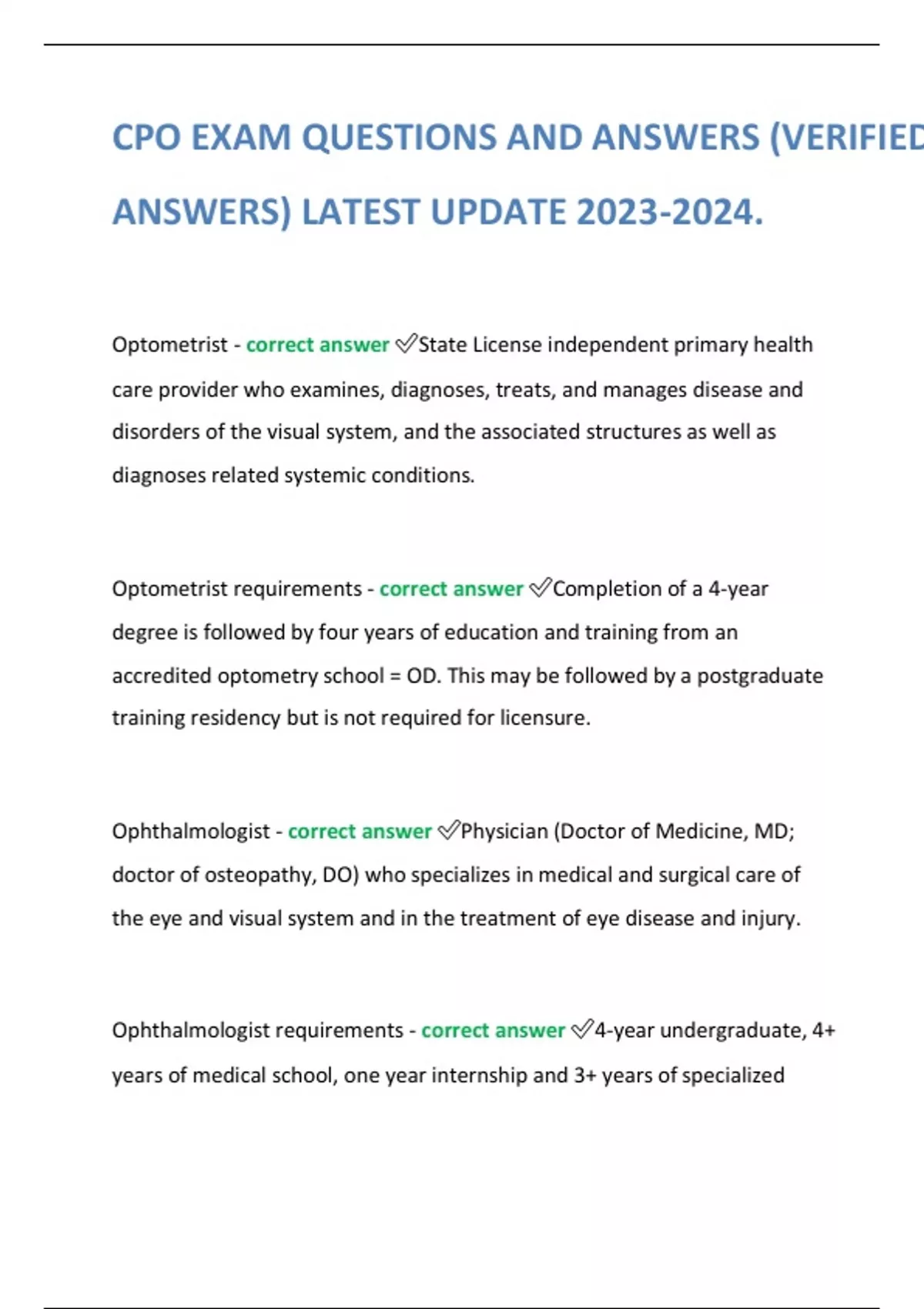 CPO EXAM QUESTIONS AND ANSWERS (VERIFIED ANSWERS) LATEST UPDATE .