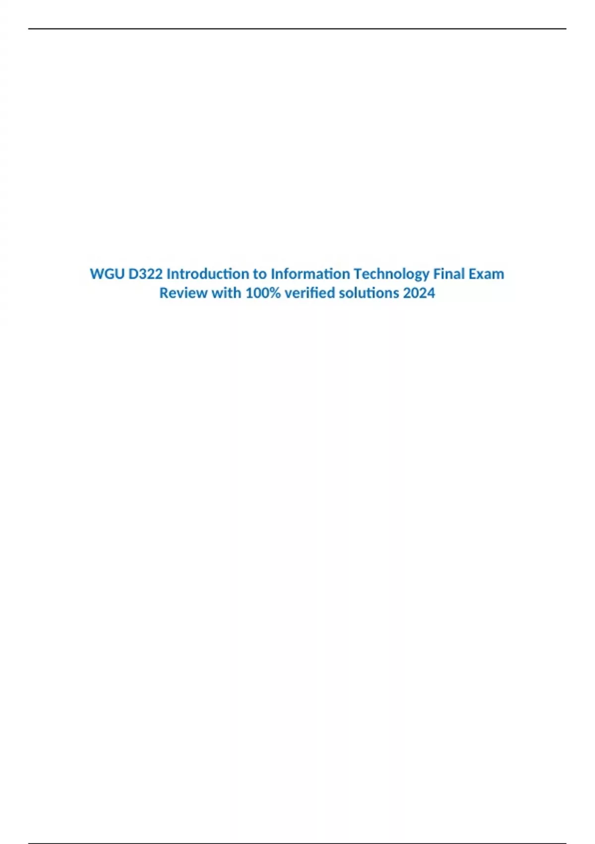 WGU D322 Introduction to Information Technology Final Exam Review with 100% verified solutions 2024 What is the definition of information technology (IT)? It is the technology used to create, maintain, and make information accessible.
