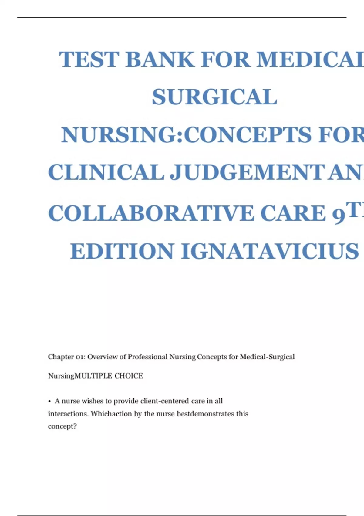 TEST BANK FOR MEDICAL SURGICAL NURSINGCONCEPTS FOR CLINICAL JUDGEMENT AND COLLABORATIVE CARE 9TH EDITION IGNATAVICIUS