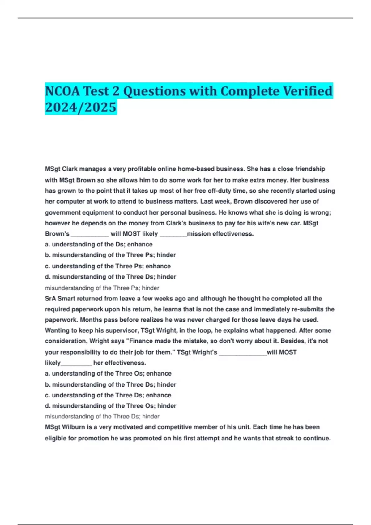 NCOA Test 2 Questions with Complete Verified 2024/2025