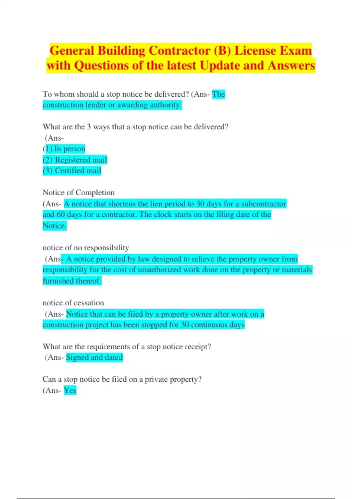 General Building Contractor (B) License Exam with Questions of the latest Update and Answers