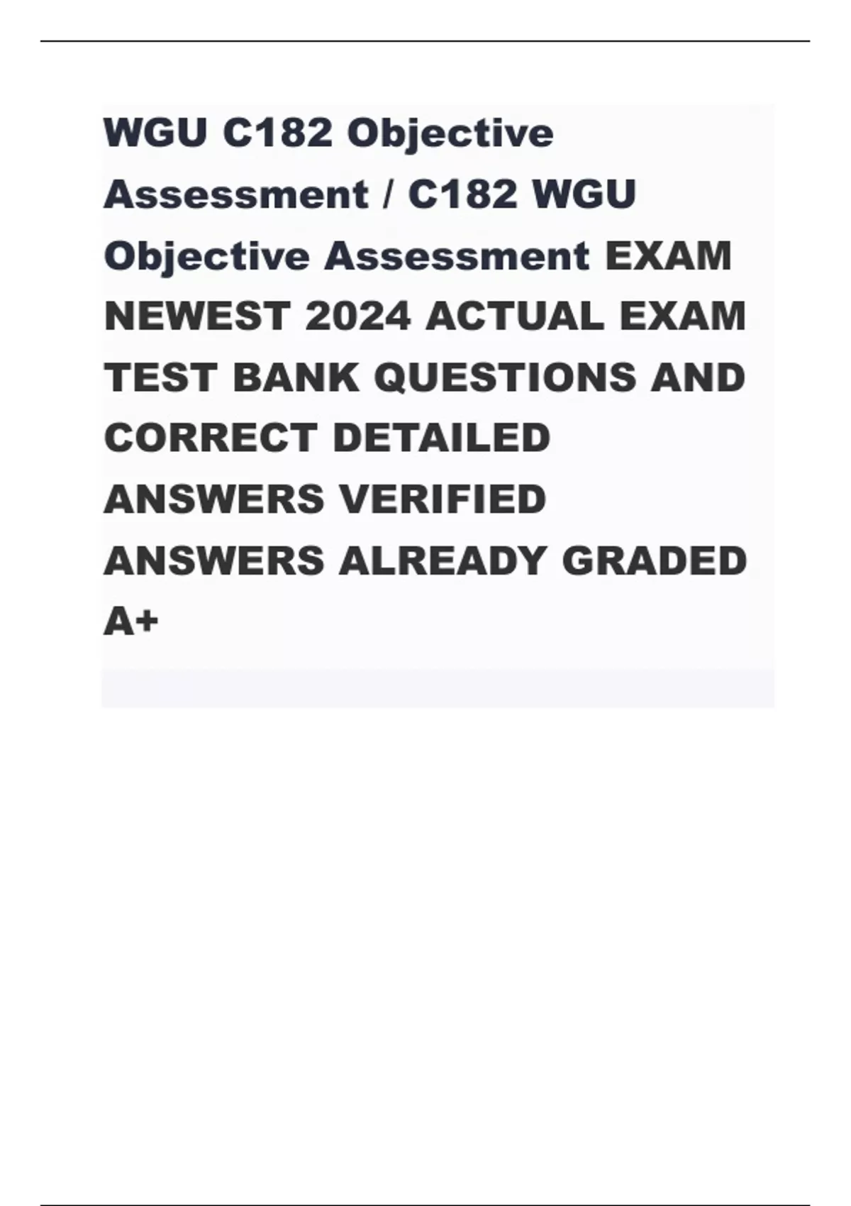 WGU C182 Objective Assessment / C182 WGU Objective Assessment EXAM NEWEST 2024 ACTUAL EXAM TEST BANK QUESTIONS AND CORRECT DETAILED ANSWERS VERIFIED ANSWERS ALREADY GRADED A+