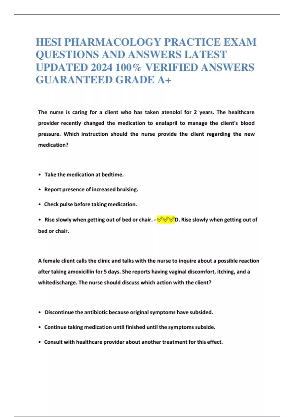 HESI PHARMACOLOGY PRACTICE EXAM QUESTIONS AND ANSWERS LATEST UPDATED 2024 100% VERIFIED ANSWERS GUARANTEED GRADE A+