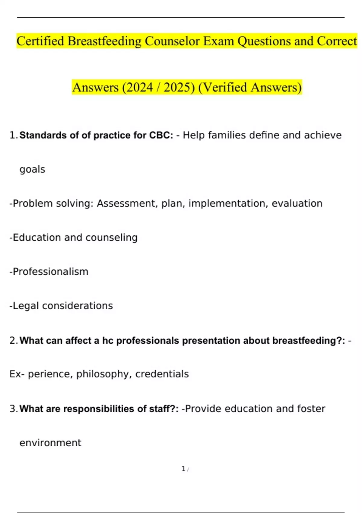 PCE Certified Breastfeeding Counselor Exam Questions and Answers 2024/2025 (Verified Answers).