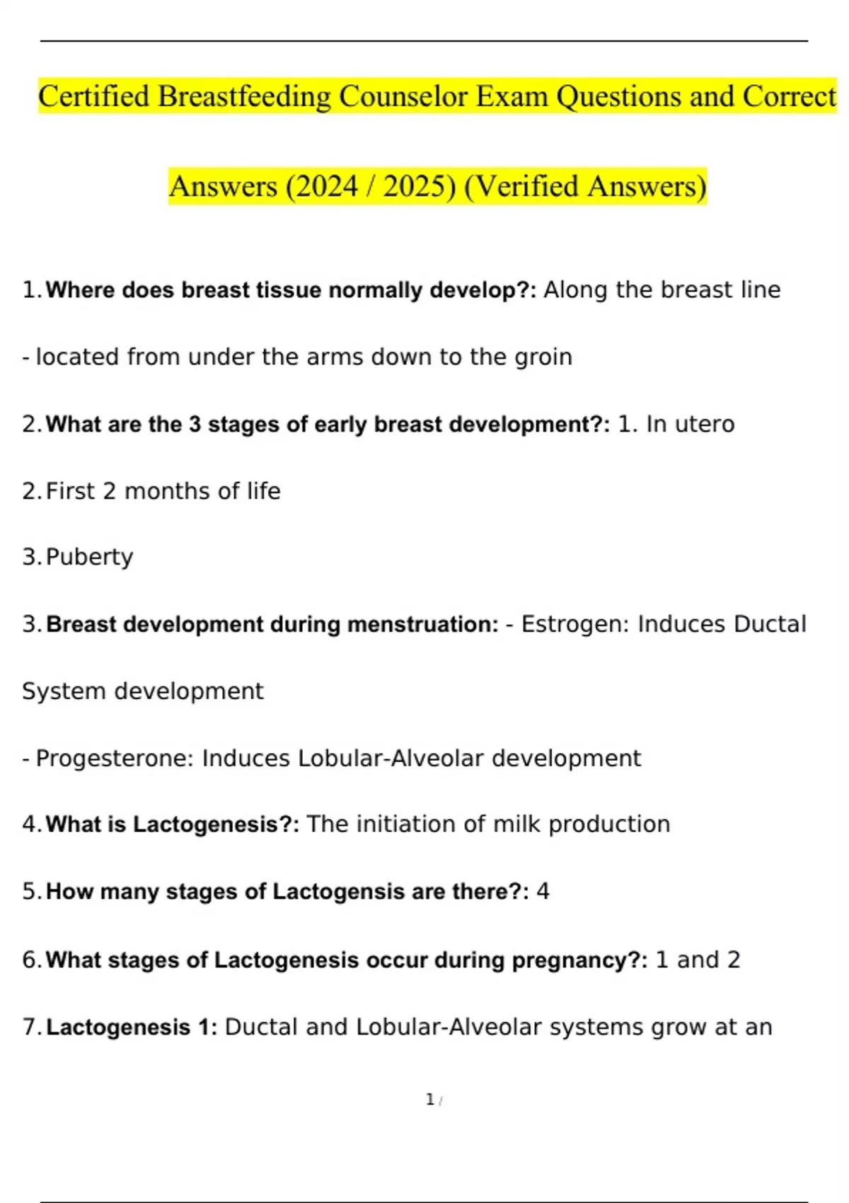 PCE Certified Breastfeeding Counselor Exam Questions and Answers (2024/2025) (Verified Answers).