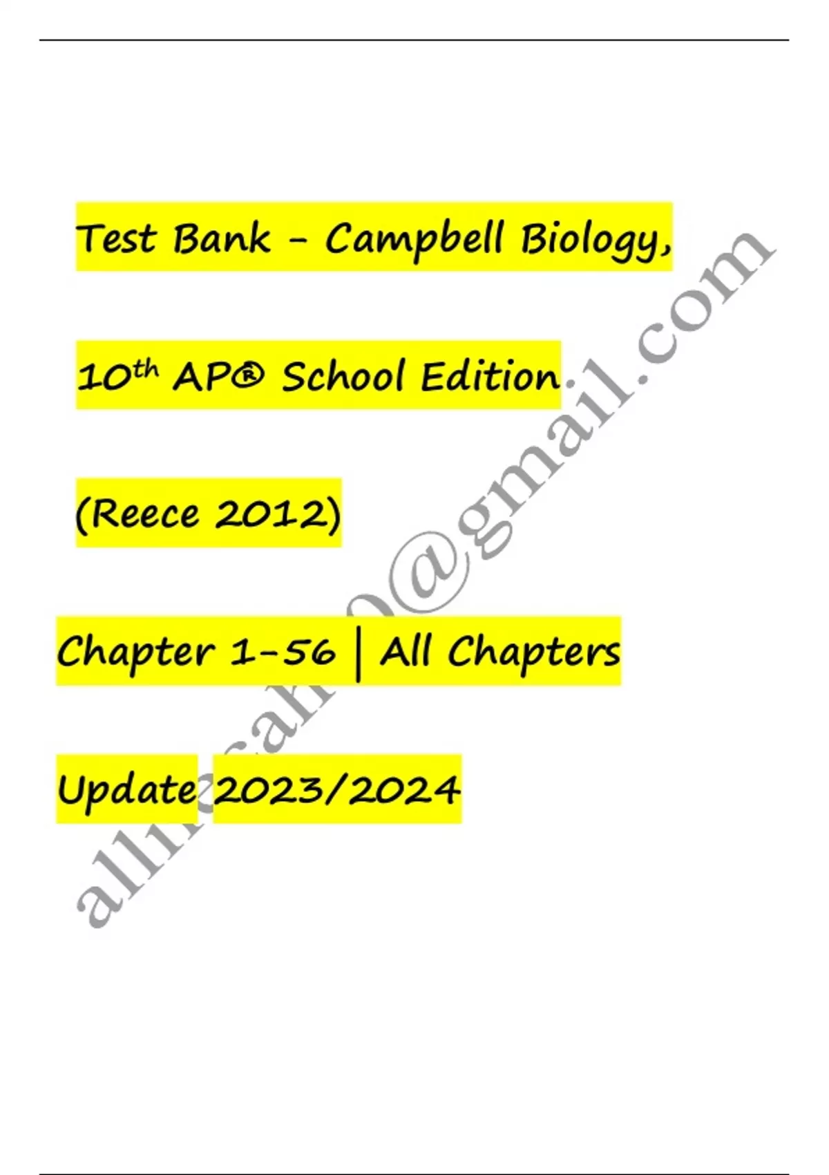 Test bank campbell biology 10th ap school edition reece 2012 chapter 1_56 / All Chapters Updated 2024 / Rated A+