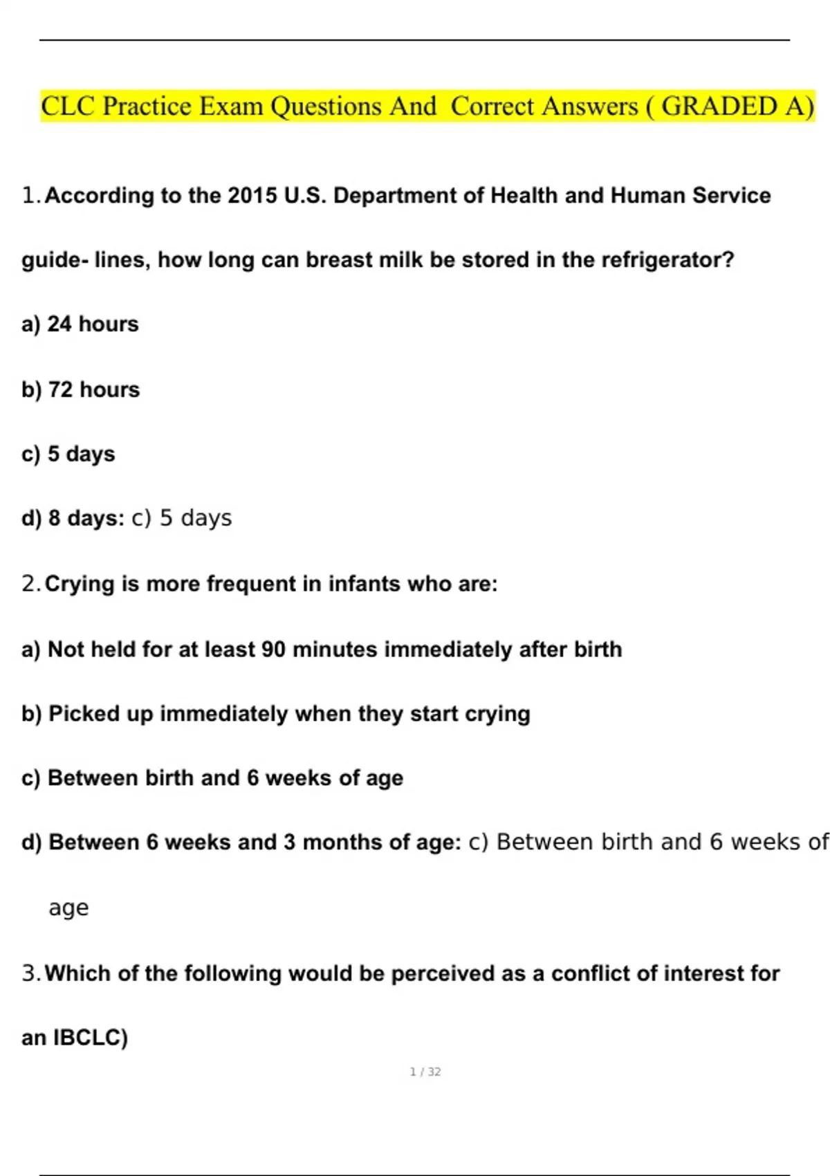CLC PRACTICE EXAM QUESTIONS AND CORRECT ANSWERS GRADED A+
