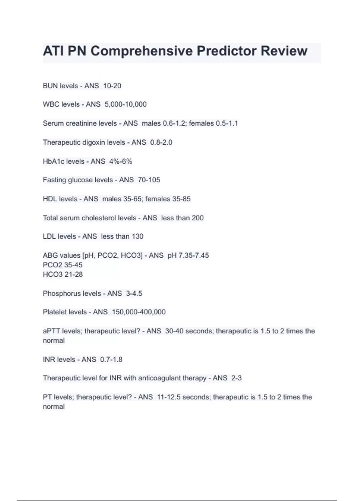 ATI PN Comprehensive Predictor Review Questions And Answers100% Verified