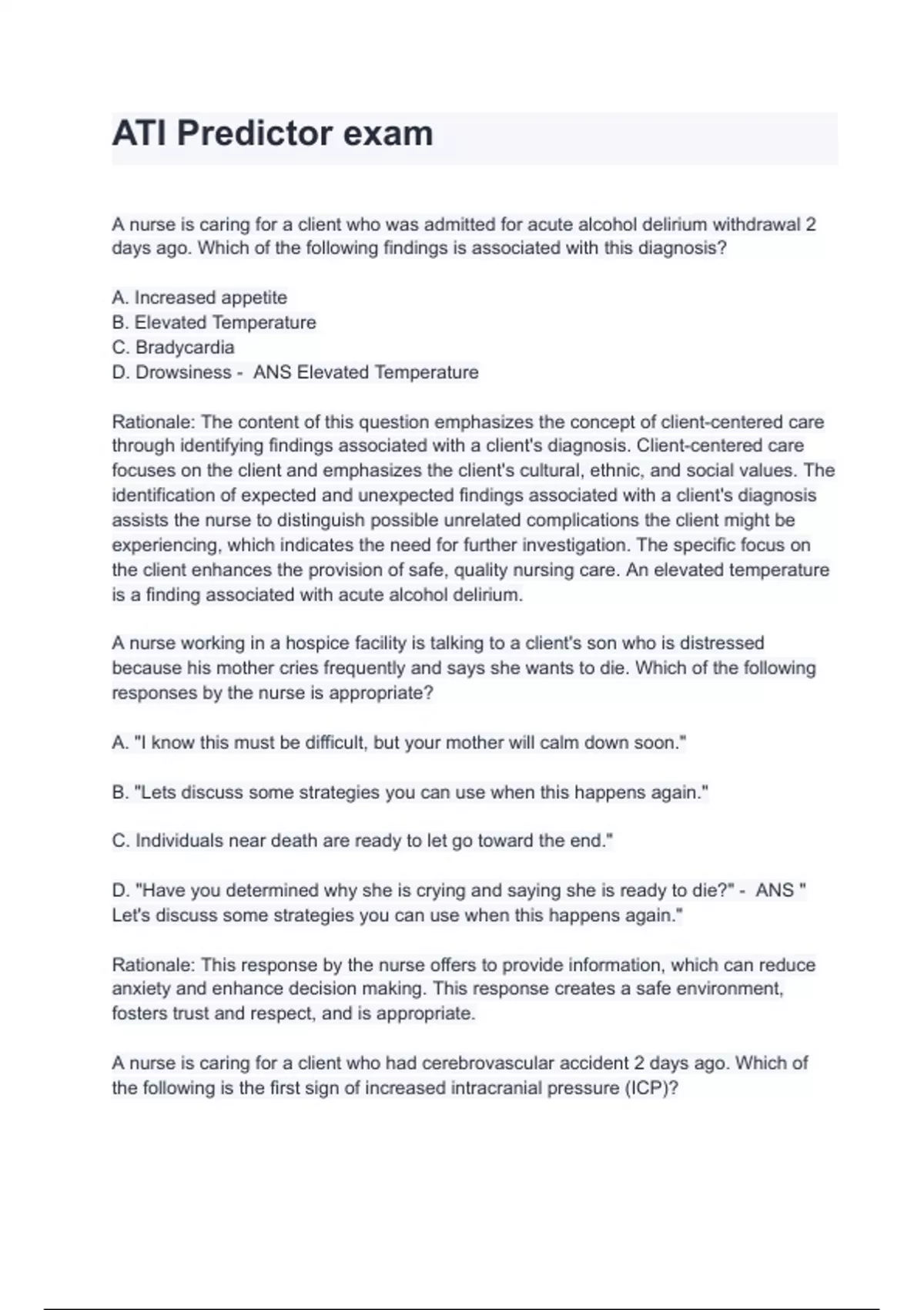 ati predictor exam questions and answers 2024 100