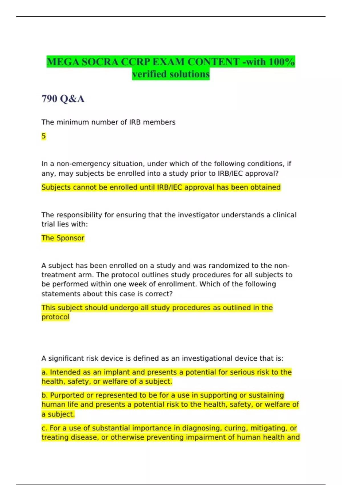 MEGA SOCRA CCRP EXAM CONTENT -with 100% verified solutions