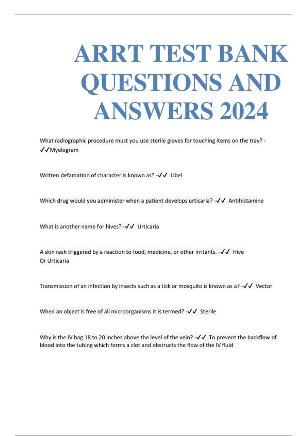 ARRT TEST BANK QUESTIONS AND ANSWERS 2024