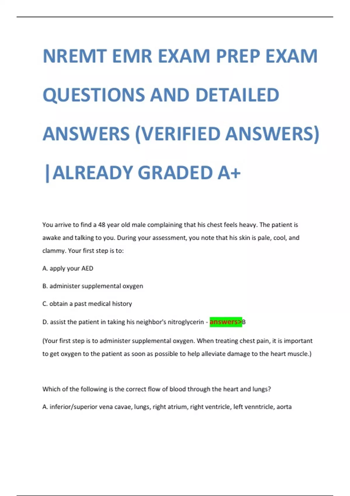 NREMT EMR EXAM PREP EXAM QUESTIONS AND DETAILED ANSWERS (VERIFIED ANSWERS) ALREADY GRADED A+