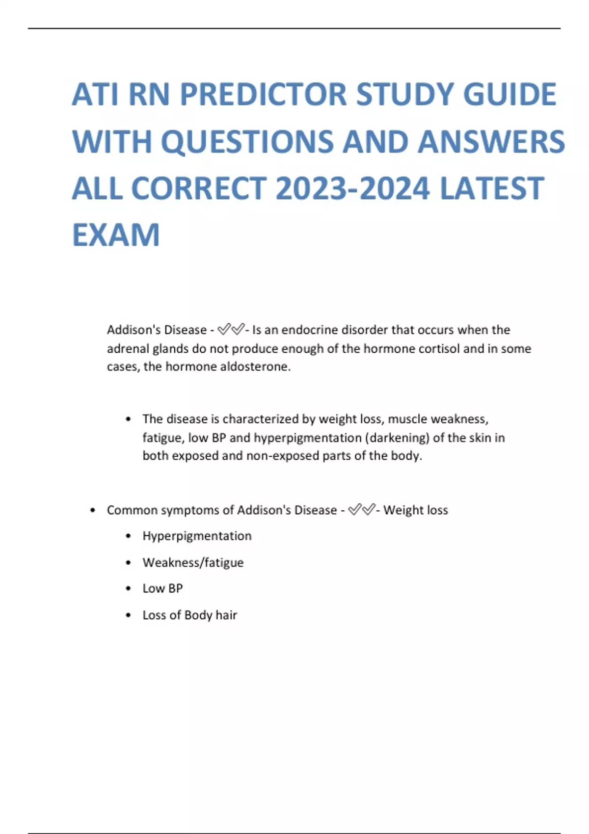 ATI RN PREDICTOR STUDY GUIDE WITH QUESTIONS AND ANSWERS ALL CORRECT LATEST EXAM