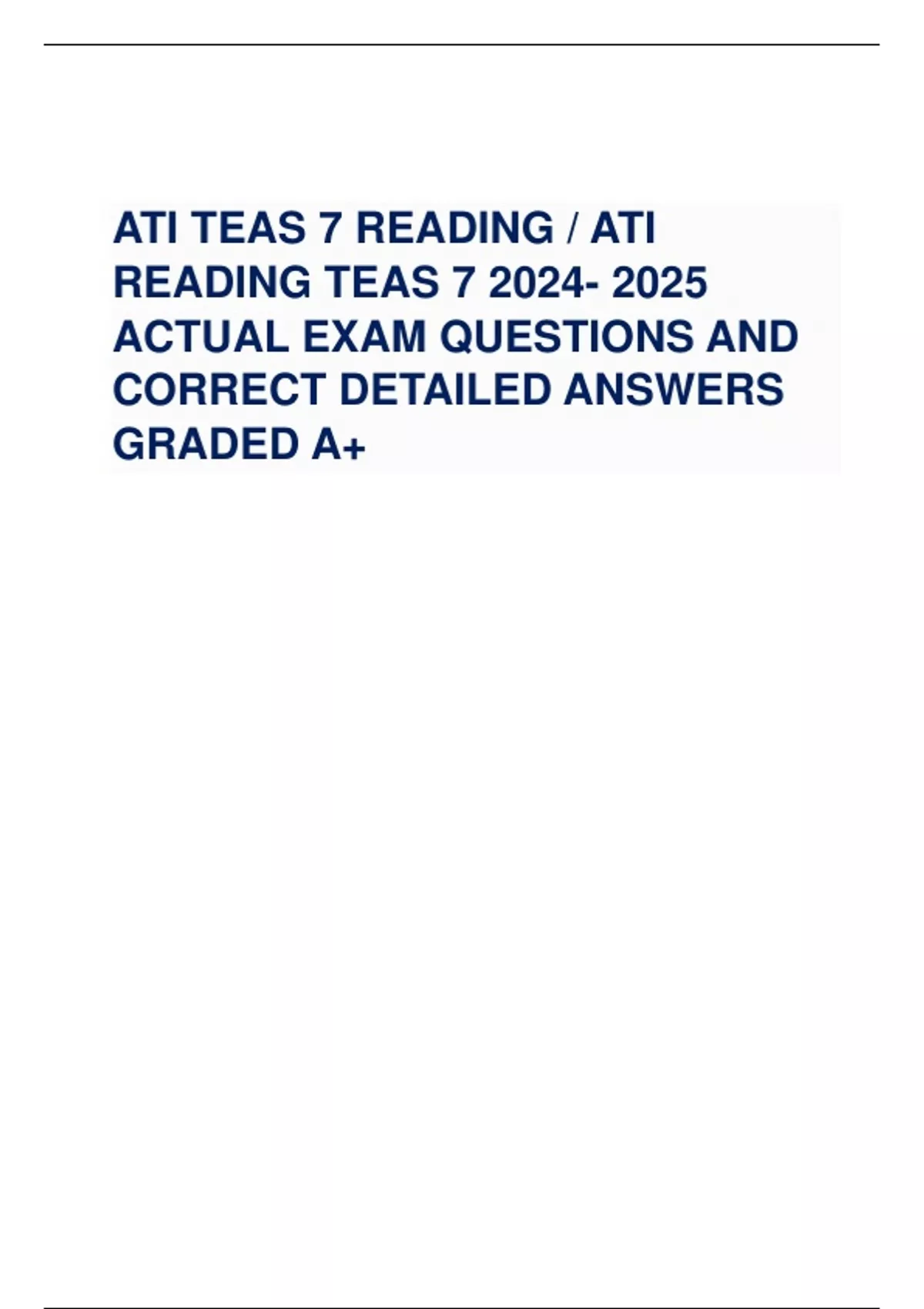 ATI TEAS 7 READING / ATI READING TEAS ACTUAL EXAM QUESTIONS AND CORRECT DETAILED ANSWERS GRADED A+