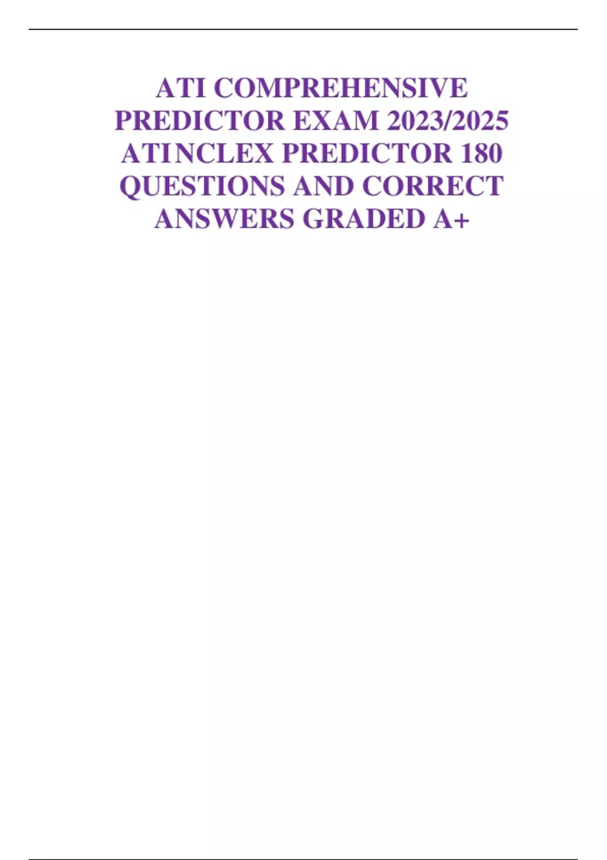 ATI COMPREHENSIVE PREDICTOR EXAM 2023/2025 ATINCLEX PREDICTOR 180 QUESTIONS AND CORRECT ANSWERS GRADED A+