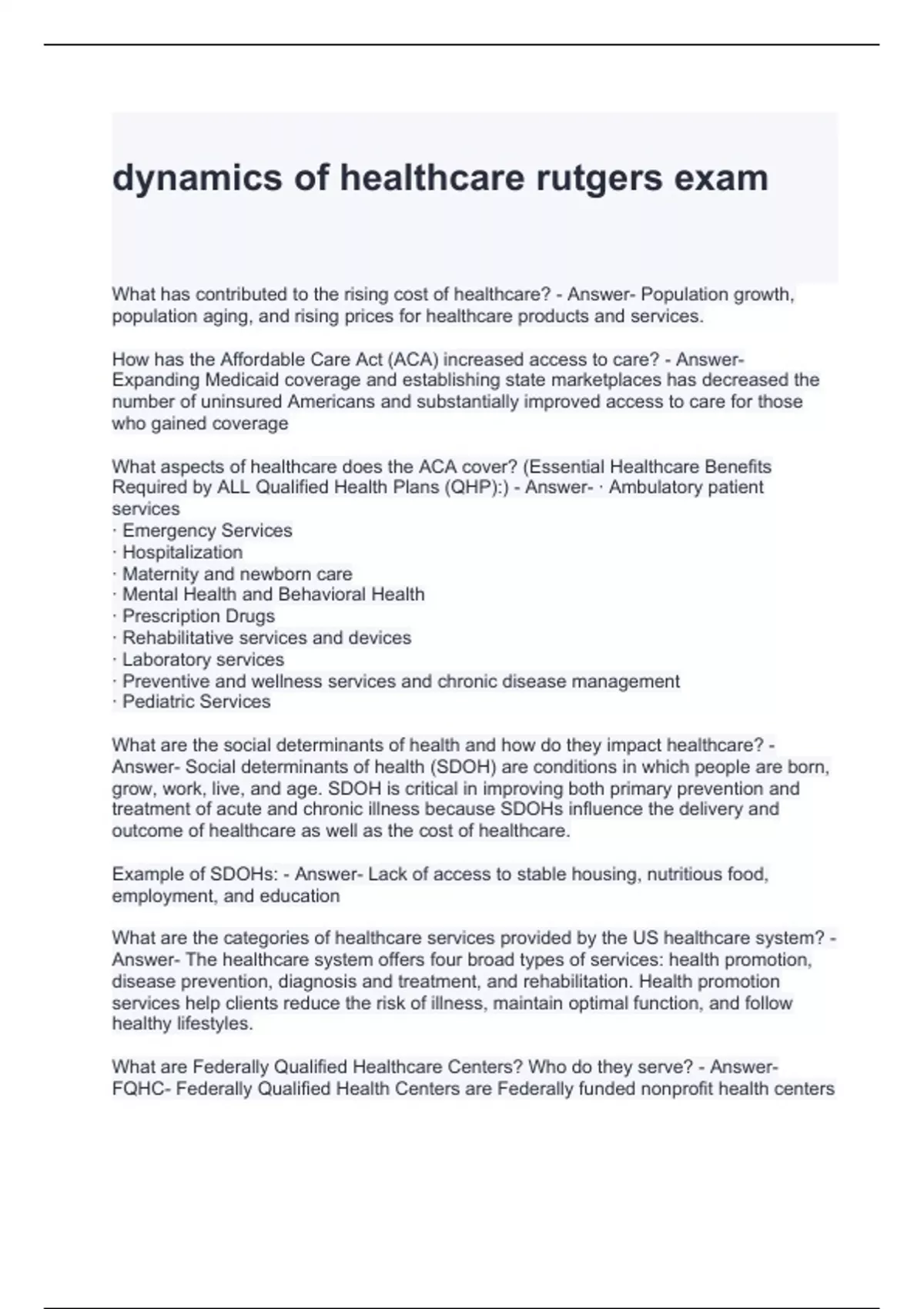 dynamics of healthcare rutgers exam with verified answers