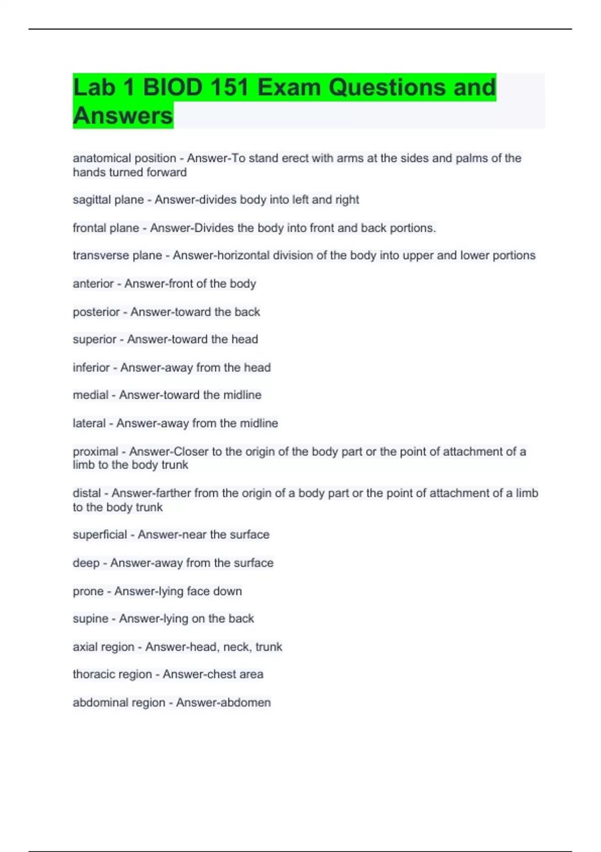 Lab 1 BIOD 151 Exam Questions and